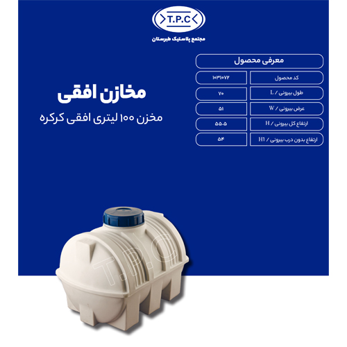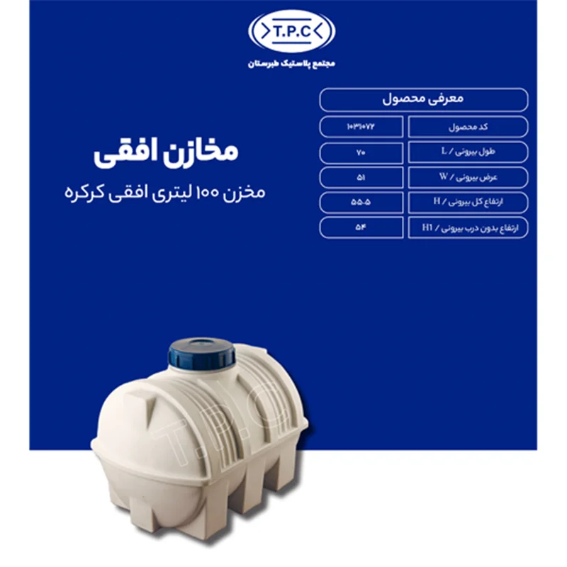 با مخزن 100 لیتری افقی سه لایه، نیازهای نگهداری آب یا مایعات خود را با کیفیت و اطمینان برطرف کنید. این مخزن با ساختار سه لایه مقاوم در برابر نور خورشید، ضربه و حرارت طراحی شده است و با ظرفیت مناسب خود، بهترین انتخاب برای خانه، باغ یا پروژههای صنعتی شماست.