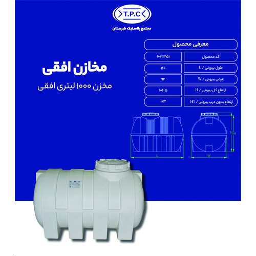 اگر به دنبال یک مخزن با کیفیت و مطمئن برای نگهداری آب یا سایر مایعات هستید، مخزن 1000 لیتری افقی سه لایه، بهترین انتخاب شماست. با طراحی ویژه سه لایه، ضد نور خورشید و مقاوم در برابر خوردگی، این مخزن دوام و عملکرد بینظیری را تضمین میکند.