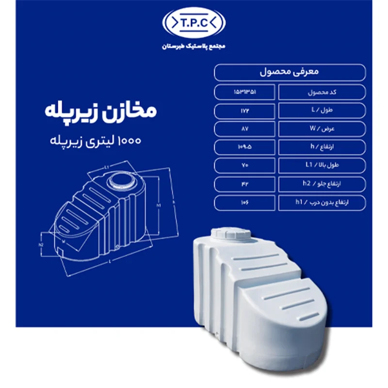 با مخزن 1000 لیتری زیر پلهای سه لایه، ذخیرهسازی مطمئن و بهینه آب را تجربه کنید. طراحی کمجا و مقاوم آن، ایدهآل برای فضاهای کوچک است. جنس سه لایه مخزن، حفاظت بیشتر در برابر نور و جلبکزایی را تضمین میکند.