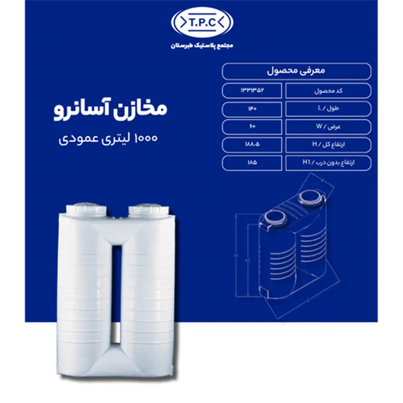 مخزن 1000 لیتری عمودی آسان رو سه لایه، میتواند انتخابی ایدهآل برای ذخیرهسازی بهینه مایعات باشد. این مخزن، با طراحی مقاوم و سهلایه، از نفوذ نور و آلودگی جلوگیری می کند. و در نتیجه باعث حفظ کیفیت مایعات می شود. لازم به ذکر است نصب آسان و مناسب برای مصارف خانگی و صنعتی از ویژگی های این محصول می باشد.