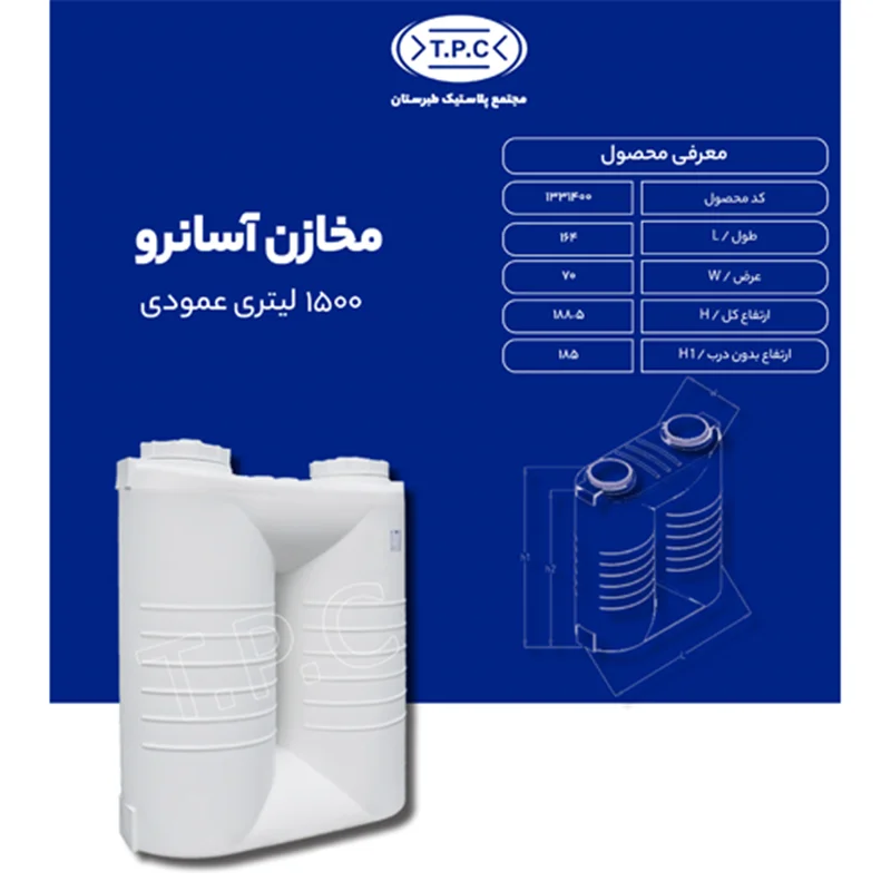 مخزن 1500 لیتری عمودی آسان رو سه لایه، انتخابی هوشمندانه برای ذخیرهسازی ایمن آب و مایعات می باشد. با طراحی مقاوم و سه لایه، این مخزن مانع نفوذ نور و کاهش جلبکزایی میشود. همچنین انتخابی ایدهآل برای فضاهای کوچک با نصبی آسان است.