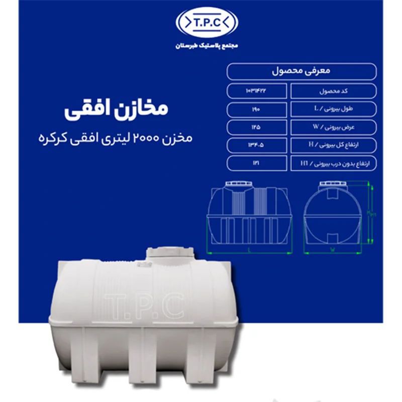 مخزن 2000 لیتری افقی کرکرهای سه لایه، راهحلی ایدهآل برای ذخیرهسازی مطمئن مایعات است. این محصول با طراحی افقی و جنس مقاوم، از نفوذ نور و حرارت جلوگیری میکند و مایعات شما را در بهترین شرایط نگه میدارد. انتخابی هوشمندانه برای کسانی که به کیفیت و دوام اهمیت میدهند.