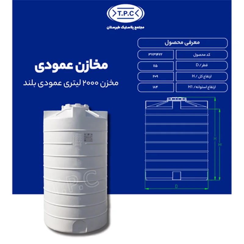 با مخزن 2000 لیتری عمودی بلند سه لایه، ذخیرهی آب و مایعات خود را با خیالی آسوده انجام دهید. طراحی سه لایه این مخزن نهتنها دوام و مقاومت بالا را تضمین میکند، بلکه محافظت از محتویات در برابر نور و آلودگی را نیز تضمین مینماید. این مخزن، انتخابی ایدهآل برای صرفهجویی در فضا و افزایش بهرهوری می باشد