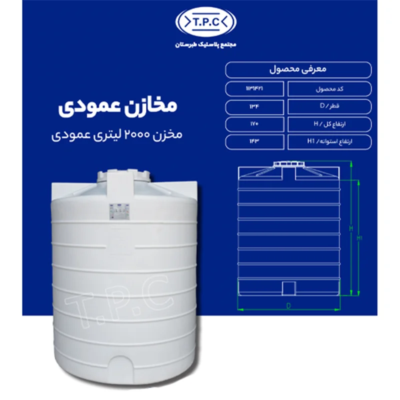 مخزن 2000 لیتری عمودی سه لایه، انتخابی عالی برای ذخیرهسازی بهینه و ایمن مایعات می باشد. با ساختار مقاوم در برابر نور خورشید و عایق بندی حرارتی، این مخزن دوام و کارایی بالایی دارد. همچنین می توان گفت این مخزن، ایدهآل برای مصارف صنعتی و خانگی می باشد.