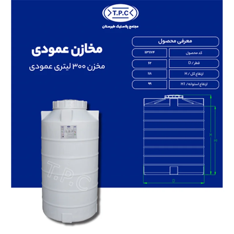مخزن 300 لیتری عمودی سه لایه، راهحل ایدهآل برای ذخیرهسازی آب و مایعات با حفظ کیفیت و سلامت است. طراحی سه لایه این مخزن، دوام و مقاومت بالا در برابر نور خورشید و شرایط محیطی را تضمین میکند. با انتخاب این محصول، از حداکثر فضای ذخیرهسازی و ایمنی اطمینان حاصل کنید.