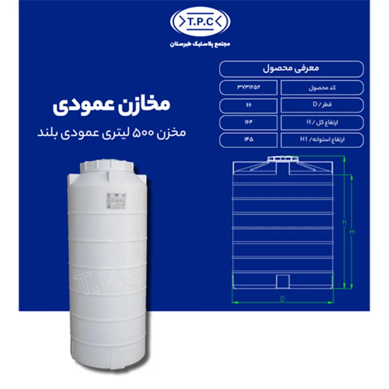 با مخزن 500 لیتری عمودی بلند سه لایه، ذخیرهسازی آب و مایعات خود را به سطح جدیدی ببرید. طراحی عمودی آن باعث صرفهجویی در فضای شما میشود و سه لایه بودنش مقاومت و ایمنی بالا را تضمین میکند. این مخزن ایدهآل برای مصارف خانگی و صنعتی میباشد.