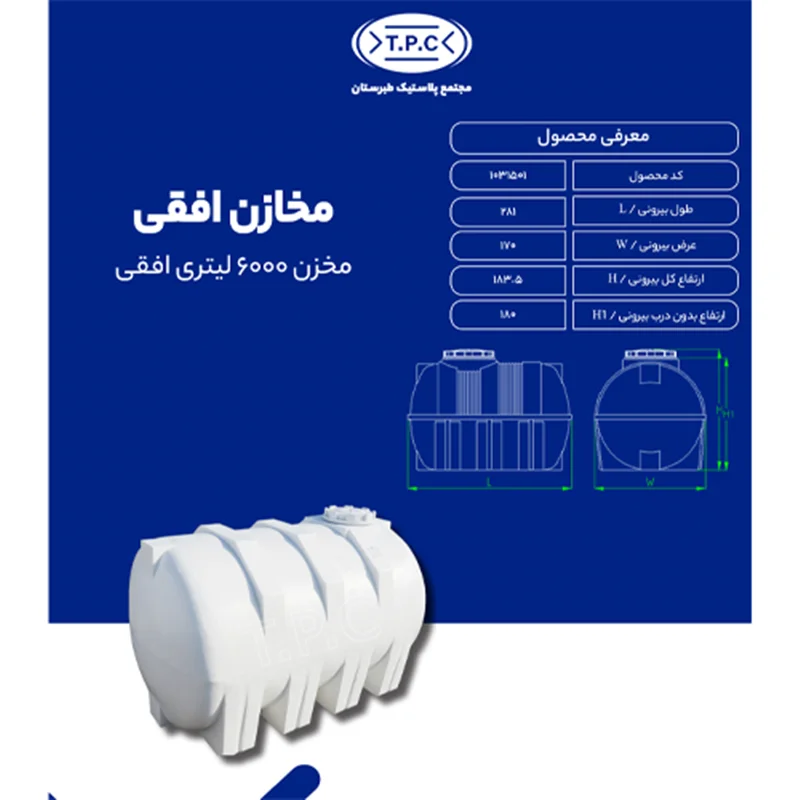 با مخزن 6000 لیتری افقی سه لایه، ذخیرهسازی آب و مایعات خود را با امنیت کامل تجربه کنید. با طراحی حرفهای و سه لایهی مقاوم، این مخزن از ورود نور و حرارت جلوگیری کرده و مایعات را در دمای ایدهآل حفظ میکند. همچنین این محصول برای خانهها، مزارع و صنایع مناسب می باشد.