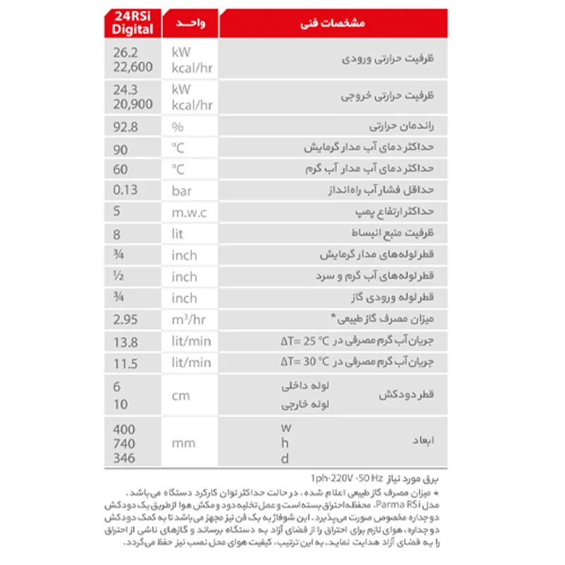 با پکیج مدل Parma24RSI Digital، خانه خود را به راحتی و با کارایی بالا گرم کنید. این پکیج دیجیتال با طراحی مدرن و قابلیتهای پیشرفته، گرمای یکنواخت و بینقصی را به ارمغان میآورد. مجهز به شیر سهطرفه خودکار و سیستم ضد یخزدگی، جریان آب داغ را در کمترین زمان ممکن فراهم میکند. نصب آسان و عملکرد بیصدا آن، این محصول را به انتخابی ایدهآل برای خانه شما تبدیل کرده است.