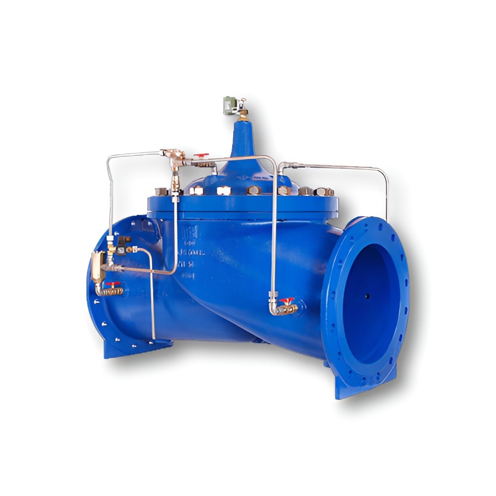 شیر کنترل پمپ، پس از الکتروپمپهای گریز از مرکز نصب میشود و با عملکرد خود از لولهها در برابر ضربات آبی ناشی از تغییرات ناگهانی سرعت جریان محافظت میکند. این شیر راهاندازی پمپ را تسهیل کرده و در نوع مجهز به پایلوت نگهدارنده فشار، امکان تنظیم عملکرد پمپ در نقطه کاری بهینه را نیز فراهم میسازد. از جمله وظایف کلیدی این شیر میتوان به موارد زیر اشاره کرد: بسته ماندن شیر تا رسیدن الکتروموتور به دور نامی و ایجاد فشار لازم، بسته شدن تدریجی شیر پیش از خاموش شدن پمپ، و عملکرد ترکیبی بهصورت شیر یکطرفه و قطع و وصل در هنگام قطع برق. کلیه قطعات چدنی این شیر با رنگ اپوکسی پودری آبی به شماره RAL 5005 یا RAL 5015 و به روش الکترواستاتیک با ضخامت ۲۵۰ میکرون پوشش داده میشوند.